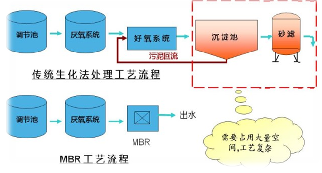 MBR同傳統(tǒng)生化工藝對(duì)比圖